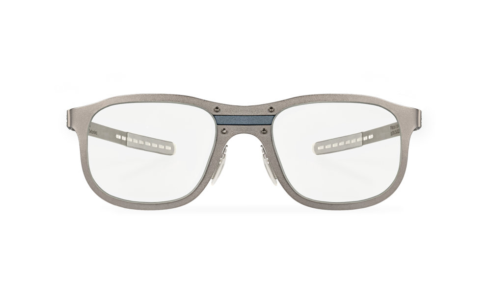 - Die sichtbaren Schrauben und die farbige Brücke in der Mitte verleihen ihr einen ikonischen Charakter. Standard sind die Farbkombinationen Fassung Silber / Brücke Anthrazit und Fassung Anthrazit / Brücke Silber. Andere Kombinationen auf Anfrage.