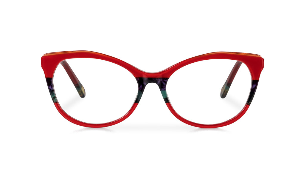 - Klassische Cateye-Lesebrille in wunderschönem Rot mit feinen zusätzlichen Farbakzenten.