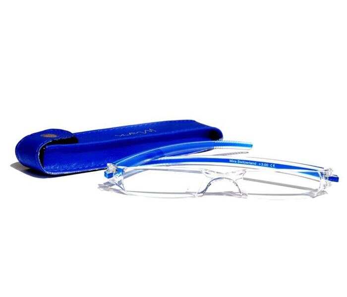Modische Einstück-Acrylglaslesebrille in frischen Farben mit passendem Etui.